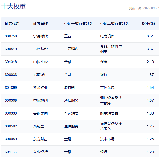 (来源:中证指数公司,截至2025.9.22,个股仅作列示,不构成投资建议和推荐,权重占比动态调整,仅供参考。)