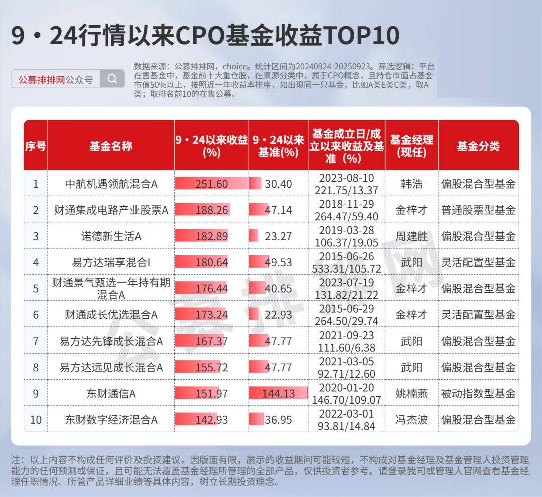 所谓“易中天”,指的是CPO概念下的三大龙头股——新易盛、中际旭创和天孚通信。笔者对此梳理了一批属于CPO概念,且持仓市值占基金市值50%以上的基金,9·24行情以来收益均超140%。