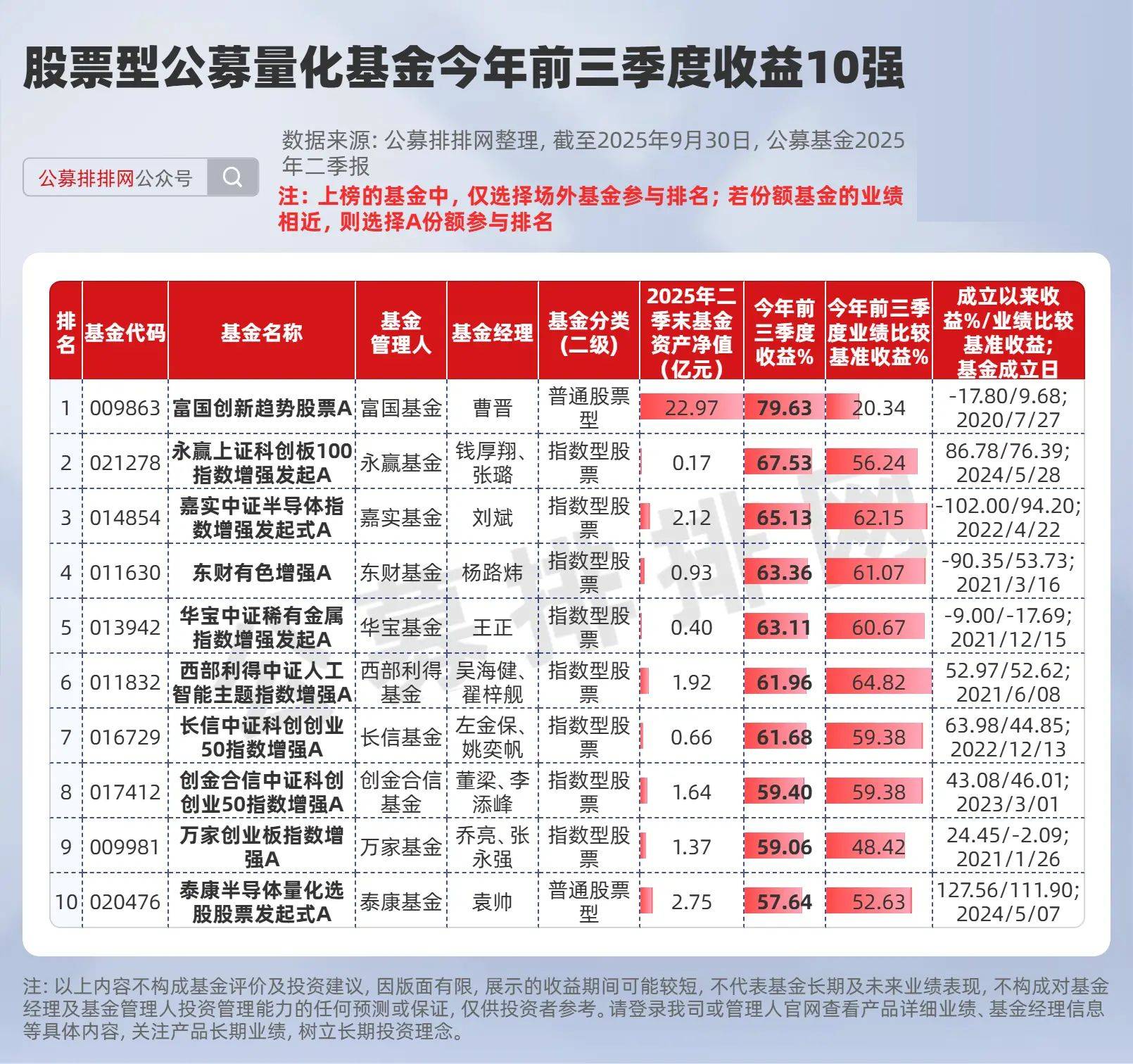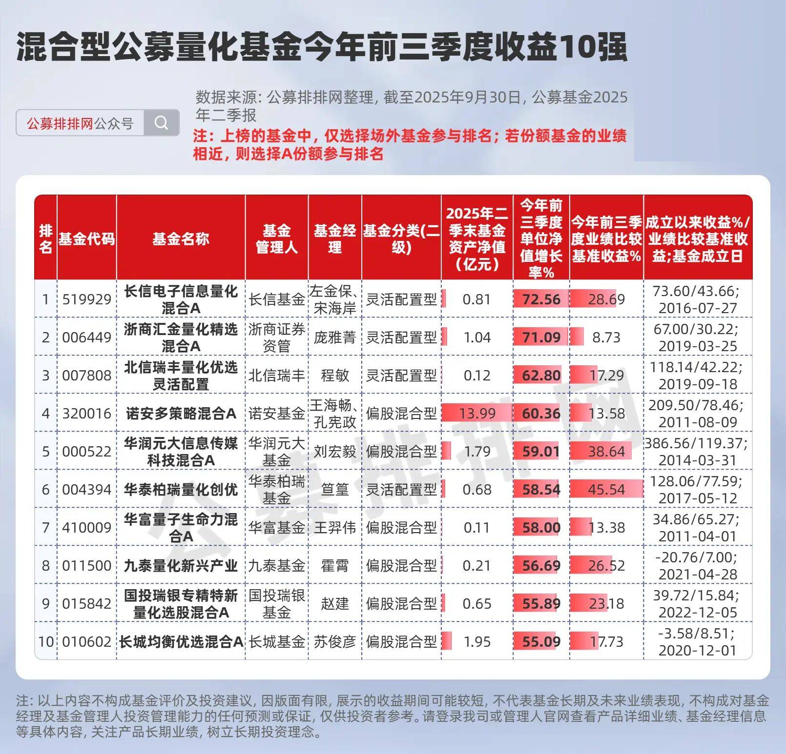 米兰体育- 米兰体育官方网站- APP下载量化基金2025前三季度收益10强出炉!冠军收益超70%!
