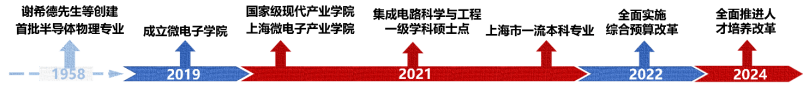 微电子学院2021年获批首批国家级现代产业学院-上海微电子产业学院,与集成电路龙头企业建立了深入的合作关系,联聘企业导师打造产教深度融合的人才培养模式。学院目前拥有微电子科学与工程本科专业、集成电路科学与工程一级学科硕士点和自主增设的“集成电路科学与工程”交叉学科博士点,实施本硕博一体化培养,打通微电子科学与工程专业和集成电路科学与工程学科的培养通道,培养集成电路卓越创新人才。