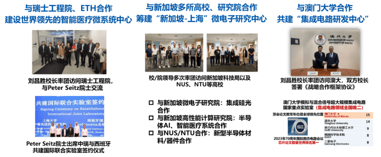 学院坚持贯彻国际化战略,与瑞士工程院、新加坡多所高校、澳门大学等达成合作,打造准工业化、国际化一流微电子学院。