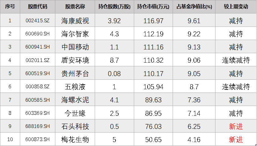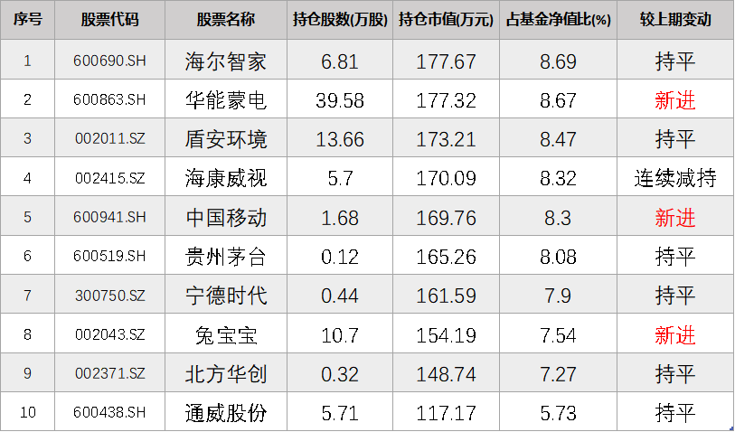 3、在2025年年末,基金前十大股票持仓占基金股票资产的比重为88%左右。