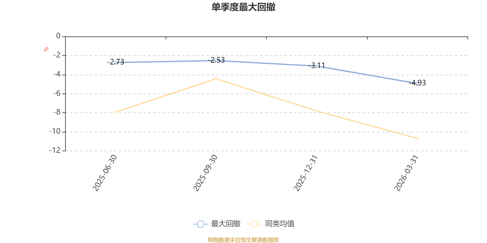 截至4月20日,基金成立以来最大回撤为4.93%。单季度最大回撤出现在2026年一季度,为4.93%。