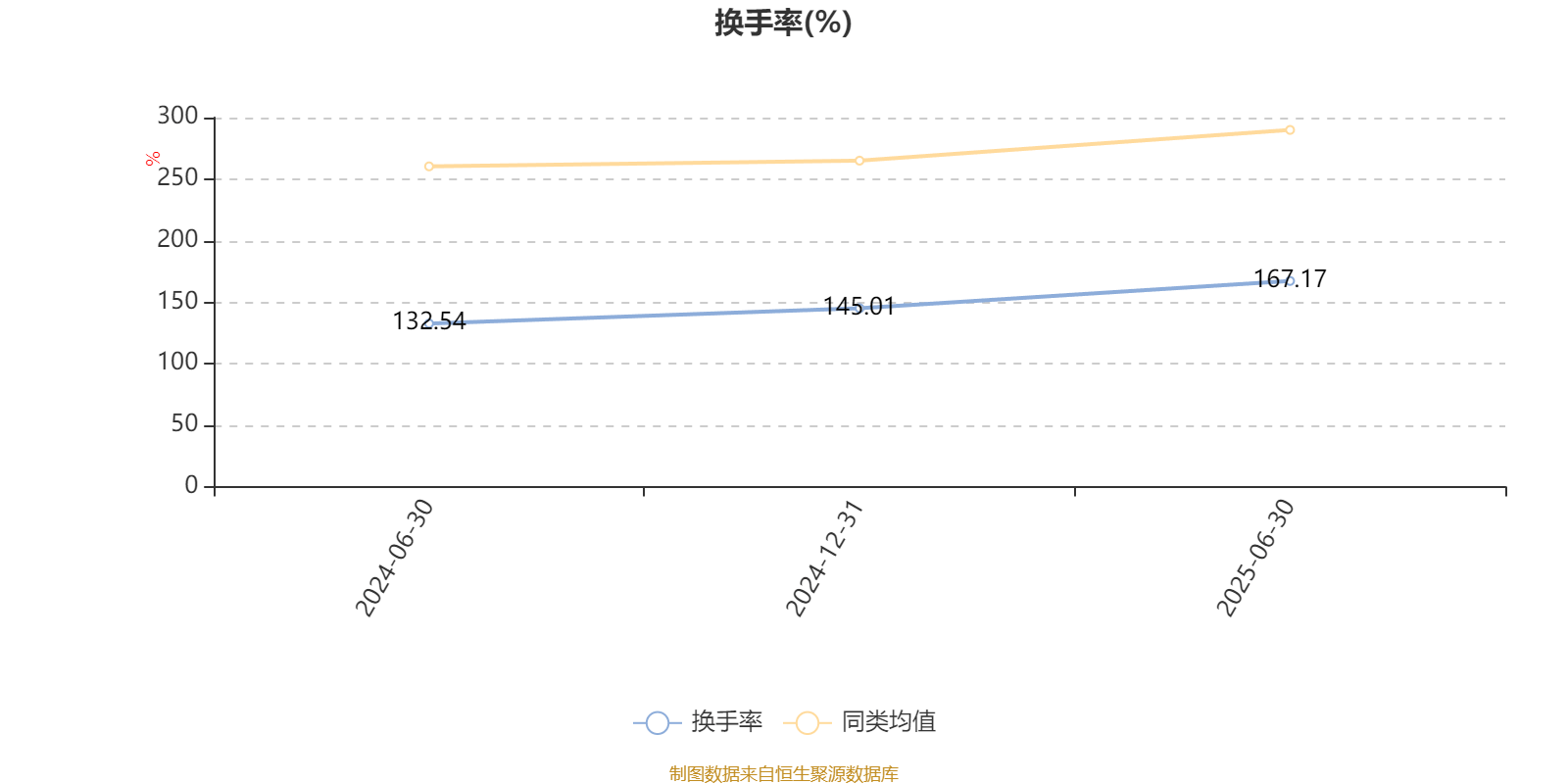 截至2025年6月30日,基金最近半年换手率约167.17%,持续低于同类均值。