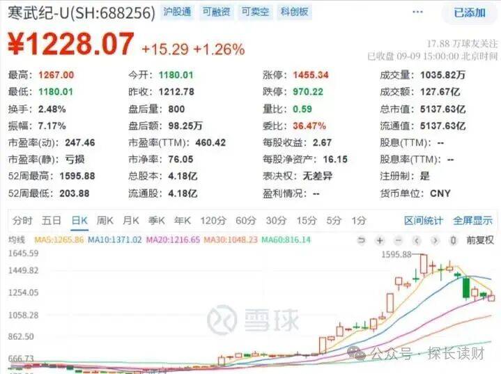 自踏入7月,寒武纪的股价便如离弦之箭,一路扶摇直上。直至8月28日收盘,其股价已从7月初的不到600元(前复权价)狂飙至1587.91元,不仅强势闯入A股“千元股”行列,更一举超越贵州茅台的1446.1元,加冕为A股“最贵新股王”。